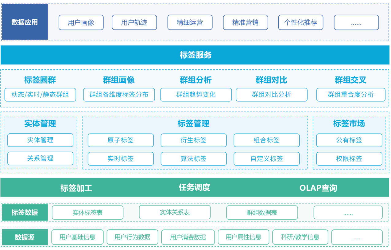 平臺支持對API服務的統(tǒng)-根據(jù)標簽數(shù)據(jù)應用場景,基于OLAP引擎和大數(shù)據(jù)分析算法,實現(xiàn)用戶畫像、用戶行為軌跡、個性化推薦、用戶權限精細化等標簽服務。