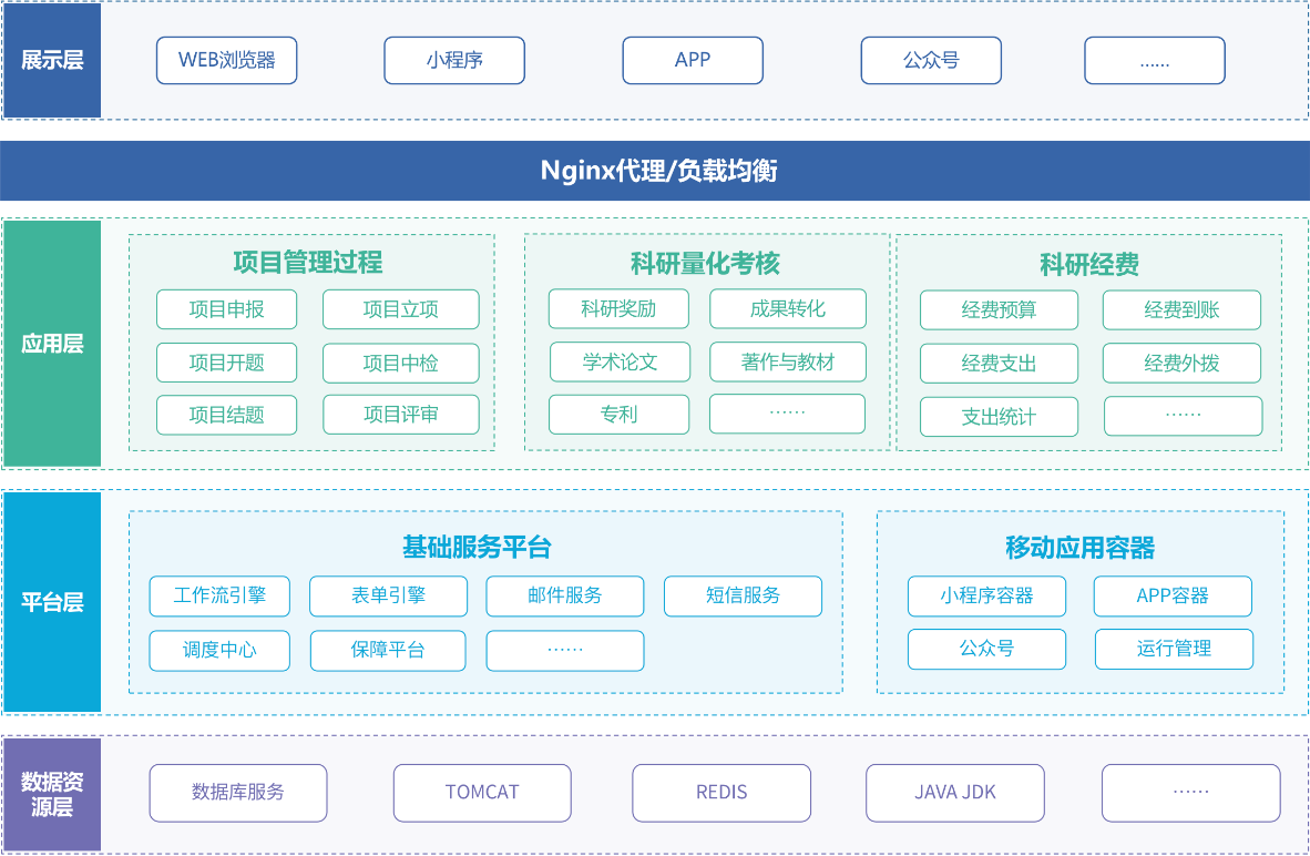 智慧科研綜合管理平臺通過對項目進度、資源、經費、成果等信息的全方位管理,將項目的過程信息整合,自動建立過程文檔,同時為學校提高科研成果、獲獎情況及日常科研活動的查詢統計,并且支持自動生成科研人員績效考核信息,并對教育部門要求的科研統計數據進行上報,使得科研主管部門對項目的資源分配更合理項目執行過程更透明并有據可依,提升科研能力及辦事效率。