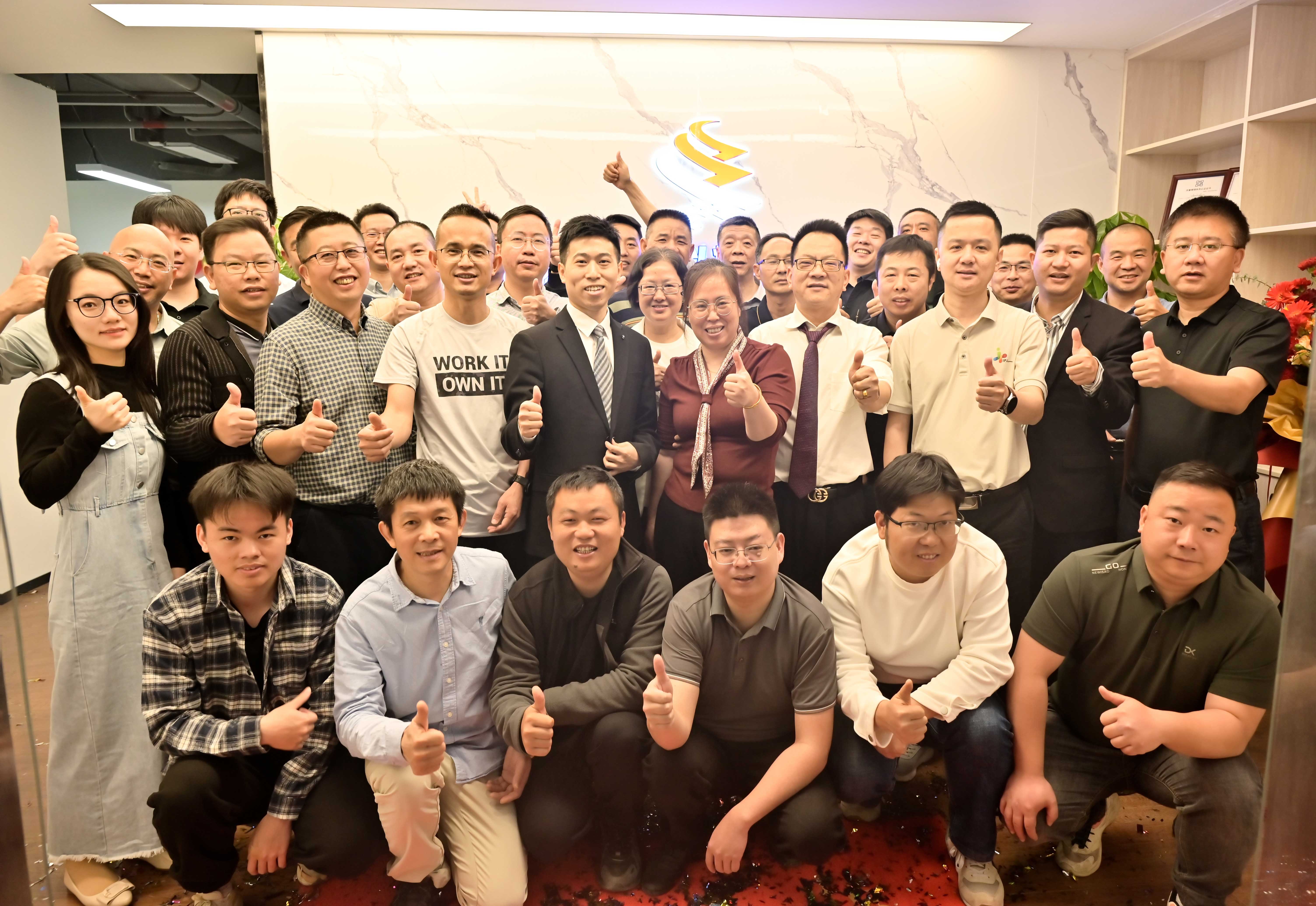致辭結束后,全體人員移步至公司前臺,進行了溫馨而莊重的大合影。大家面帶微笑,精神抖擻,將這一具有紀念意義的時刻定格。鏡頭中,鏡頭定格的瞬間,公司領導們堅定的眼神,宛如銳利的劍鋒,直指未來發展的制高點;員工們洋溢著喜悅與自豪的笑臉,恰似熊熊燃燒的火焰,彰顯著拼搏后的無限激情。與此同時,朋友兄弟們的祝福如滾滾驚雷,響徹云霄,為公司新征程的開啟注入了磅礴動力!