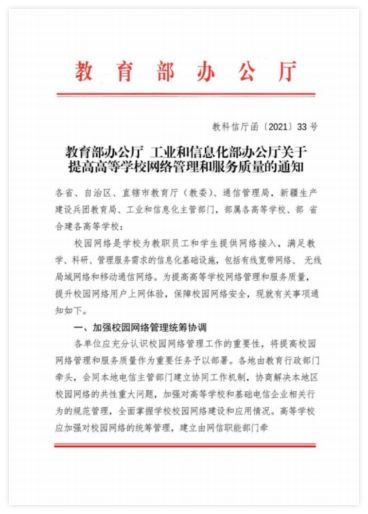 2021年教育部、工信部聯合發文關于提高高等休息網絡管理和服務質量的通知